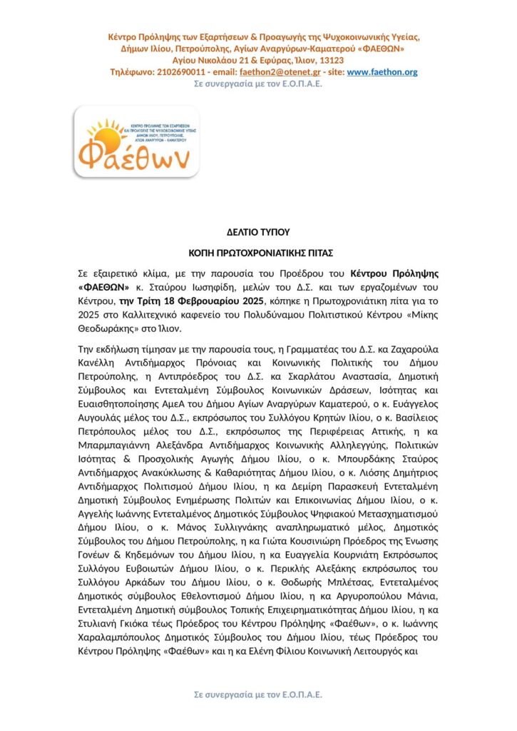 ΚΟΠΗ ΠΙΤΑΣ 2025_ ΚΕΝΤΡΟ ΠΡΟΛΗΨΗΣ ΦΑΕΘΩΝ